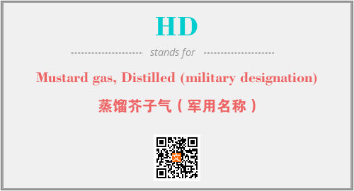 英文缩略词“HD”经常作为“Mustard gas, Distilled (military designation)”的英文缩写来使用,中文表示:“蒸馏芥子气(军用名称)”。本文将详细介绍英文缩写词HD所代表英文单词,其对应的中文拼音、详细解释以及在英语中的流行度。此外,还有关于缩略词HD的分类、应用领域及相关应用示例等。