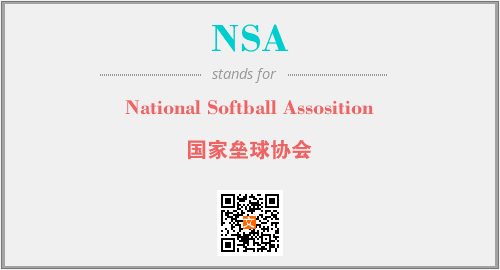 英文缩略词“NSA”经常作为“National Softball Assosition”的英文缩写来使用,中文表示:“国家垒球协会”。本文将详细介绍英文缩写词NSA所代表英文单词,其对应的中文拼音、详细解释以及在英语中的流行度。此外,还有关于缩略词NSA的分类、应用领域及相关应用示例等。