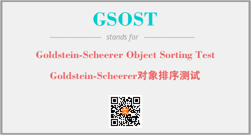 上述内容是“Goldstein-Scheerer Object Sorting Test”作为“GSOST”的缩写,解释为“Goldstein-Scheerer对象排序测试”时的信息,以及英文缩略词GSOST所代表的英文单词,其对应的中文拼音、详细解释以及在英文中的流行度和相关分类、应用领域及应用示例等。