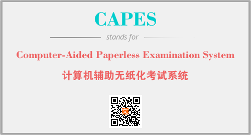 上述内容是“Computer-Aided Paperless Examination System”作为“CAPES”的缩写,解释为“计算机辅助无纸化考试系统”时的信息,以及英文缩略词CAPES所代表的英文单词,其对应的中文拼音、详细解释以及在英文中的流行度和相关分类、应用领域及应用示例等。