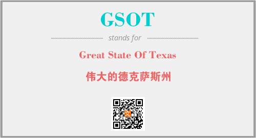 英文缩略词“GSOT”经常作为“Great State Of Texas”的英文缩写来使用,中文表示:“伟大的德克萨斯州”。本文将详细介绍英文缩写词GSOT所代表英文单词,其对应的中文拼音、详细解释以及在英语中的流行度。此外,还有关于缩略词GSOT的分类、应用领域及相关应用示例等。