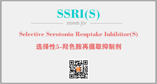 上述内容是“Selective Serotonin Reuptake Inhibitor(S)”作为“SSRI(S)”的缩写,解释为“选择性5-羟色胺再摄取抑制剂”时的信息,以及英文缩略词SSRI(S)所代表的英文单词,其对应的中文拼音、详细解释以及在英文中的流行度和相关分类、应用领域及应用示例等。