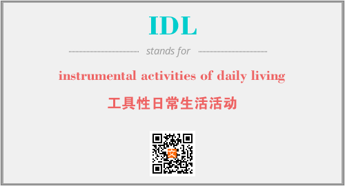 上述内容是“instrumental activities of daily living”作为“IDL”的缩写,解释为“工具性日常生活活动”时的信息,以及英文缩略词IDL所代表的英文单词,其对应的中文拼音、详细解释以及在英文中的流行度和相关分类、应用领域及应用示例等。
