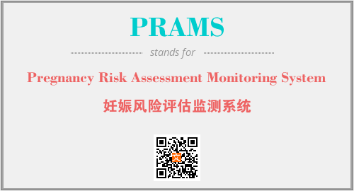 上述内容是“Pregnancy Risk Assessment Monitoring System”作为“PRAMS”的缩写,解释为“妊娠风险评估监测系统”时的信息,以及英文缩略词PRAMS所代表的英文单词,其对应的中文拼音、详细解释以及在英文中的流行度和相关分类、应用领域及应用示例等。