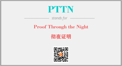 上述内容是“Proof Through the Night”作为“PTTN”的缩写,解释为“彻夜证明”时的信息,以及英文缩略词PTTN所代表的英文单词,其对应的中文拼音、详细解释以及在英文中的流行度和相关分类、应用领域及应用示例等。