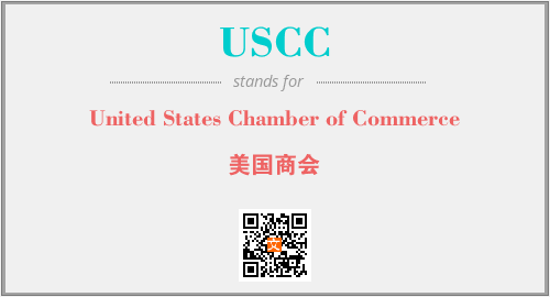 英文缩略词“USCC”经常作为“United States Chamber of Commerce”的英文缩写来使用,中文表示:“美国商会”。本文将详细介绍英文缩写词USCC所代表英文单词,其对应的中文拼音、详细解释以及在英语中的流行度。此外,还有关于缩略词USCC的分类、应用领域及相关应用示例等。