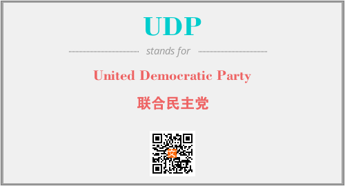 上述内容是“United Democratic Party”作为“UDP”的缩写,解释为“联合民主党”时的信息,以及英文缩略词UDP所代表的英文单词,其对应的中文拼音、详细解释以及在英文中的流行度和相关分类、应用领域及应用示例等。