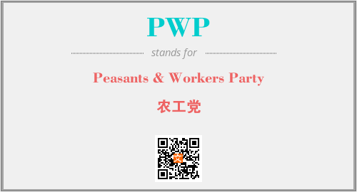 英文缩略词“PWP”经常作为“Peasants & Workers Party”的英文缩写来使用,中文表示:“农工党”。本文将详细介绍英文缩写词PWP所代表英文单词,其对应的中文拼音、详细解释以及在英语中的流行度。此外,还有关于缩略词PWP的分类、应用领域及相关应用示例等。