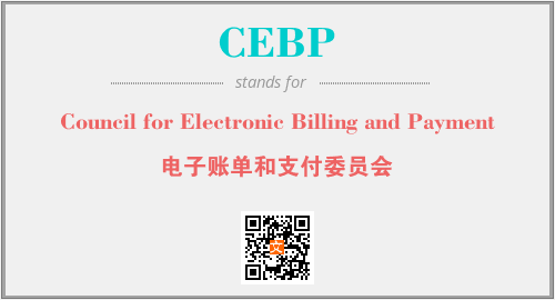 英文缩略词“CEBP”经常作为“Council for Electronic Billing and Payment”的英文缩写来使用,中文表示:“电子账单和支付委员会”。本文将详细介绍英文缩写词CEBP所代表英文单词,其对应的中文拼音、详细解释以及在英语中的流行度。此外,还有关于缩略词CEBP的分类、应用领域及相关应用示例等。