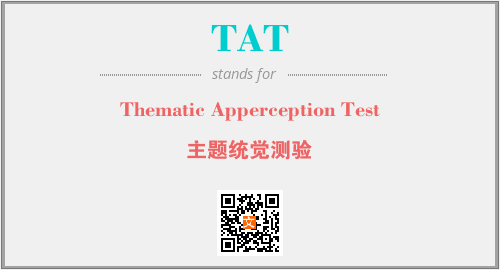 英文缩略词“TAT”经常作为“Thematic Apperception Test”的英文缩写来使用,中文表示:“主题统觉测验”。本文将详细介绍英文缩写词TAT所代表英文单词,其对应的中文拼音、详细解释以及在英语中的流行度。此外,还有关于缩略词TAT的分类、应用领域及相关应用示例等。