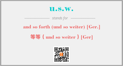 上述内容是“and so forth (und so weiter) [Ger.]”作为“u.s.w.”的缩写,解释为“等等(und so weiter)[Ger]”时的信息,以及英文缩略词u.s.w.所代表的英文单词,其对应的中文拼音、详细解释以及在英文中的流行度和相关分类、应用领域及应用示例等。