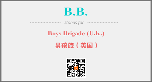 英文缩略词“B.B.”经常作为“Boys Brigade (U.K.)”的英文缩写来使用,中文表示:“男孩旅(英国)”。本文将详细介绍英文缩写词B.B.所代表英文单词,其对应的中文拼音、详细解释以及在英语中的流行度。此外,还有关于缩略词B.B.的分类、应用领域及相关应用示例等。