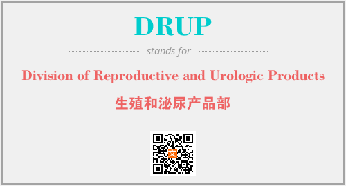 上述内容是“Division of Reproductive and Urologic Products”作为“DRUP”的缩写,解释为“生殖和泌尿产品部”时的信息,以及英文缩略词DRUP所代表的英文单词,其对应的中文拼音、详细解释以及在英文中的流行度和相关分类、应用领域及应用示例等。