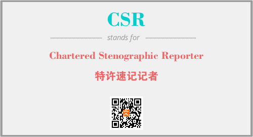 英文缩略词“CSR”经常作为“Chartered Stenographic Reporter”的英文缩写来使用,中文表示:“特许速记记者”。本文将详细介绍英文缩写词CSR所代表英文单词,其对应的中文拼音、详细解释以及在英语中的流行度。此外,还有关于缩略词CSR的分类、应用领域及相关应用示例等。