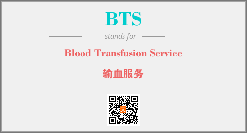 英文缩略词“BTS”经常作为“Blood Transfusion Service”的英文缩写来使用,中文表示:“输血服务”。本文将详细介绍英文缩写词BTS所代表英文单词,其对应的中文拼音、详细解释以及在英语中的流行度。此外,还有关于缩略词BTS的分类、应用领域及相关应用示例等。