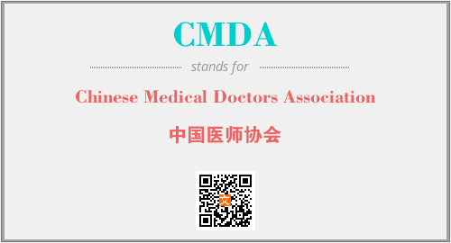 英文缩略词“CMDA”经常作为“Chinese Medical Doctors Association”的英文缩写来使用,中文表示:“中国医师协会”。本文将详细介绍英文缩写词CMDA所代表英文单词,其对应的中文拼音、详细解释以及在英语中的流行度。此外,还有关于缩略词CMDA的分类、应用领域及相关应用示例等。