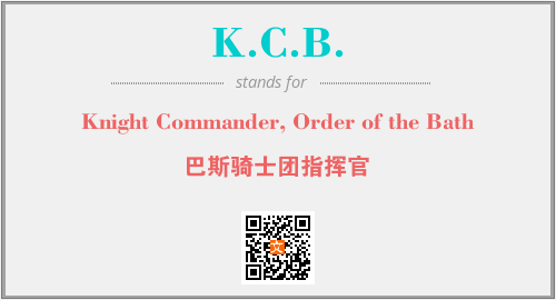英文缩略词“K.C.B.”经常作为“Knight Commander, Order of the Bath”的英文缩写来使用,中文表示:“巴斯骑士团指挥官”。本文将详细介绍英文缩写词K.C.B.所代表英文单词,其对应的中文拼音、详细解释以及在英语中的流行度。此外,还有关于缩略词K.C.B.的分类、应用领域及相关应用示例等。