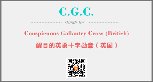 上述内容是“Conspicuous Gallantry Cross (British)”作为“C.G.C.”的缩写,解释为“醒目的英勇十字勋章(英国)”时的信息,以及英文缩略词C.G.C.所代表的英文单词,其对应的中文拼音、详细解释以及在英文中的流行度和相关分类、应用领域及应用示例等。