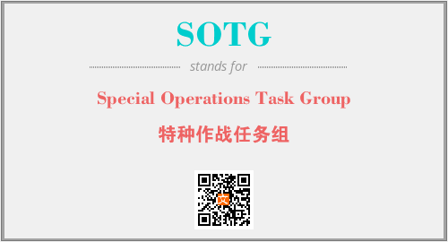 上述内容是“Special Operations Task Group”作为“SOTG”的缩写,解释为“特种作战任务组”时的信息,以及英文缩略词SOTG所代表的英文单词,其对应的中文拼音、详细解释以及在英文中的流行度和相关分类、应用领域及应用示例等。