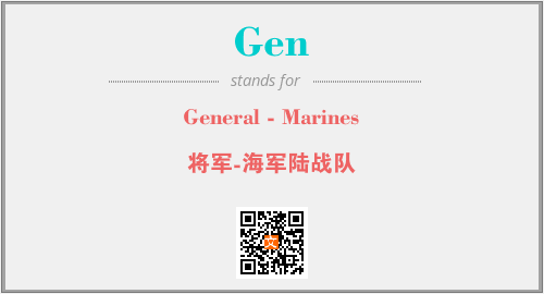 上述内容是“General - Marines”作为“Gen”的缩写,解释为“将军-海军陆战队”时的信息,以及英文缩略词Gen所代表的英文单词,其对应的中文拼音、详细解释以及在英文中的流行度和相关分类、应用领域及应用示例等。