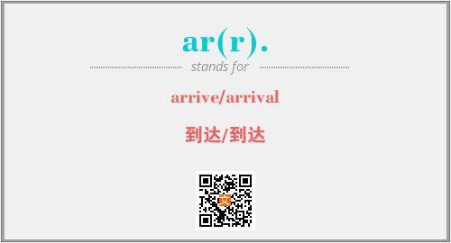 英文缩略词“ar(r).”经常作为“arrive/arrival”的英文缩写来使用,中文表示:“到达/到达”。本文将详细介绍英文缩写词ar(r).所代表英文单词,其对应的中文拼音、详细解释以及在英语中的流行度。此外,还有关于缩略词ar(r).的分类、应用领域及相关应用示例等。