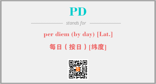 上述内容是“per diem (by day) [Lat.]”作为“PD”的缩写,解释为“每日(按日)[纬度]”时的信息,以及英文缩略词PD所代表的英文单词,其对应的中文拼音、详细解释以及在英文中的流行度和相关分类、应用领域及应用示例等。