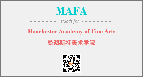 英文缩略词“MAFA”经常作为“Manchester Academy of Fine Arts”的英文缩写来使用,中文表示:“曼彻斯特美术学院”。本文将详细介绍英文缩写词MAFA所代表英文单词,其对应的中文拼音、详细解释以及在英语中的流行度。此外,还有关于缩略词MAFA的分类、应用领域及相关应用示例等。