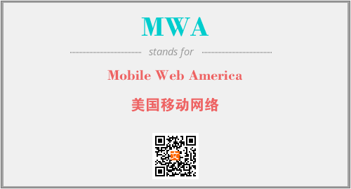 英文缩略词“MWA”经常作为“Mobile Web America”的英文缩写来使用,中文表示:“美国移动网络”。本文将详细介绍英文缩写词MWA所代表英文单词,其对应的中文拼音、详细解释以及在英语中的流行度。此外,还有关于缩略词MWA的分类、应用领域及相关应用示例等。