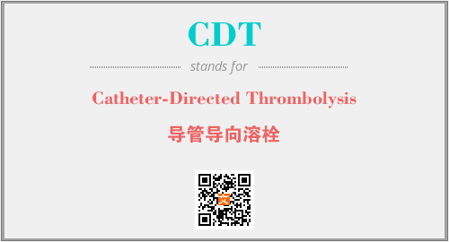 英文缩略词“CDT”经常作为“Catheter-Directed Thrombolysis”的英文缩写来使用,中文表示:“导管导向溶栓”。本文将详细介绍英文缩写词CDT所代表英文单词,其对应的中文拼音、详细解释以及在英语中的流行度。此外,还有关于缩略词CDT的分类、应用领域及相关应用示例等。