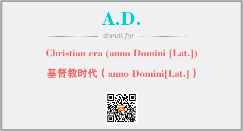 英文缩略词“A.D.”经常作为“Christian era (anno Domini [Lat.])”的英文缩写来使用,中文表示:“基督教时代(anno Domini[Lat.])”。本文将详细介绍英文缩写词A.D.所代表英文单词,其对应的中文拼音、详细解释以及在英语中的流行度。此外,还有关于缩略词A.D.的分类、应用领域及相关应用示例等。
