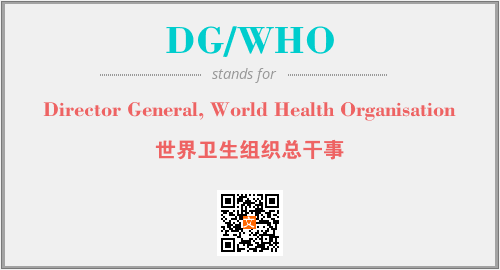 上述内容是“Director General, World Health Organisation”作为“DG/WHO”的缩写,解释为“世界卫生组织总干事”时的信息,以及英文缩略词DG/WHO所代表的英文单词,其对应的中文拼音、详细解释以及在英文中的流行度和相关分类、应用领域及应用示例等。