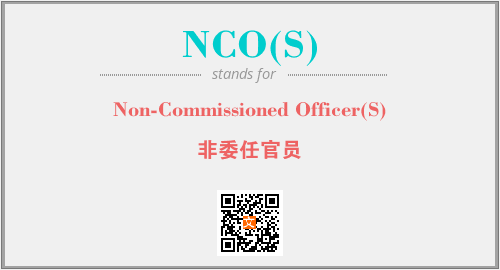 英文缩略词“NCO(S)”经常作为“Non-Commissioned Officer(S)”的英文缩写来使用,中文表示:“非委任官员”。本文将详细介绍英文缩写词NCO(S)所代表英文单词,其对应的中文拼音、详细解释以及在英语中的流行度。此外,还有关于缩略词NCO(S)的分类、应用领域及相关应用示例等。