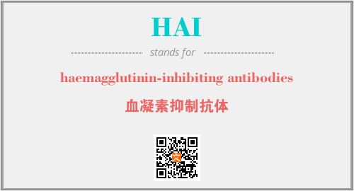 上述内容是“haemagglutinin-inhibiting antibodies”作为“HAI”的缩写,解释为“血凝素抑制抗体”时的信息,以及英文缩略词HAI所代表的英文单词,其对应的中文拼音、详细解释以及在英文中的流行度和相关分类、应用领域及应用示例等。