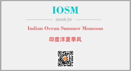 英文缩略词“IOSM”经常作为“Indian Ocean Summer Monsoon”的英文缩写来使用,中文表示:“印度洋夏季风”。本文将详细介绍英文缩写词IOSM所代表英文单词,其对应的中文拼音、详细解释以及在英语中的流行度。此外,还有关于缩略词IOSM的分类、应用领域及相关应用示例等。