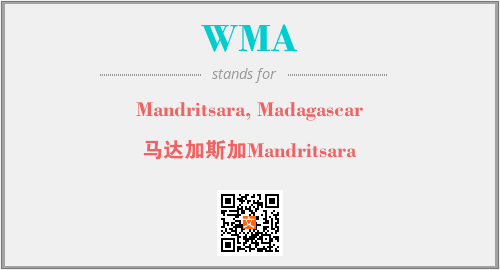 英文缩略词“WMA”经常作为“Mandritsara, Madagascar”的英文缩写来使用,中文表示:“马达加斯加Mandritsara”。本文将详细介绍英文缩写词WMA所代表英文单词,其对应的中文拼音、详细解释以及在英语中的流行度。此外,还有关于缩略词WMA的分类、应用领域及相关应用示例等。
