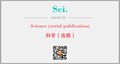 上述内容是“Science (serial publication)”作为“Sci.”的缩写,解释为“科学(连载)”时的信息,以及英文缩略词Sci.所代表的英文单词,其对应的中文拼音、详细解释以及在英文中的流行度和相关分类、应用领域及应用示例等。