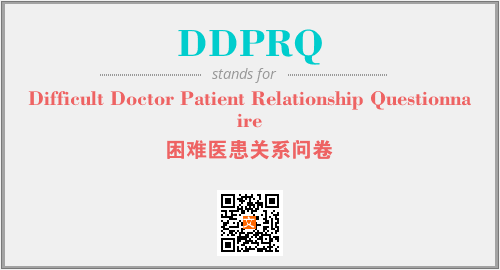 上述内容是“Difficult Doctor Patient Relationship Questionnaire”作为“DDPRQ”的缩写,解释为“困难医患关系问卷”时的信息,以及英文缩略词DDPRQ所代表的英文单词,其对应的中文拼音、详细解释以及在英文中的流行度和相关分类、应用领域及应用示例等。