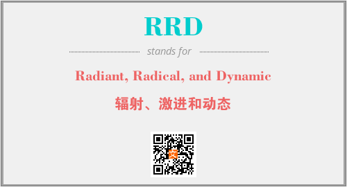 上述内容是“Radiant, Radical, and Dynamic”作为“RRD”的缩写,解释为“辐射、激进和动态”时的信息,以及英文缩略词RRD所代表的英文单词,其对应的中文拼音、详细解释以及在英文中的流行度和相关分类、应用领域及应用示例等。
