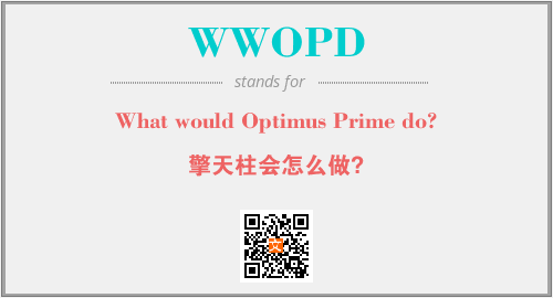 以上为What would Optimus Prime do?英文缩略词WWOPD的中文解释,以及该英文缩写在英语的流行度、分类和应用领域方面的信息。