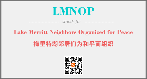上述内容是“Lake Merritt Neighbors Organized for Peace”作为“LMNOP”的缩写,解释为“梅里特湖邻居们为和平而组织”时的信息,以及英文缩略词LMNOP所代表的英文单词,其对应的中文拼音、详细解释以及在英文中的流行度和相关分类、应用领域及应用示例等。