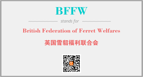上述内容是“British Federation of Ferret Welfares”作为“BFFW”的缩写,解释为“英国雪貂福利联合会”时的信息,以及英文缩略词BFFW所代表的英文单词,其对应的中文拼音、详细解释以及在英文中的流行度和相关分类、应用领域及应用示例等。
