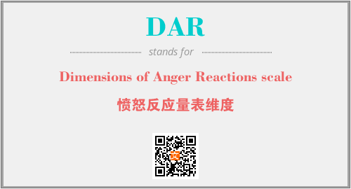 上述内容是“Dimensions of Anger Reactions scale”作为“DAR”的缩写,解释为“愤怒反应量表维度”时的信息,以及英文缩略词DAR所代表的英文单词,其对应的中文拼音、详细解释以及在英文中的流行度和相关分类、应用领域及应用示例等。