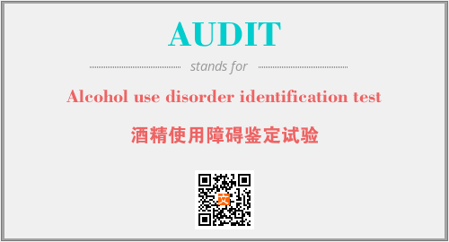 上述内容是“Alcohol use disorder identification test”作为“AUDIT”的缩写,解释为“酒精使用障碍鉴定试验”时的信息,以及英文缩略词AUDIT所代表的英文单词,其对应的中文拼音、详细解释以及在英文中的流行度和相关分类、应用领域及应用示例等。