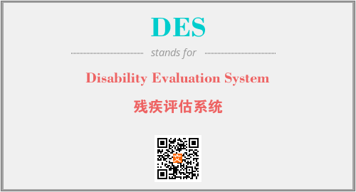 上述内容是“Disability Evaluation System”作为“DES”的缩写,解释为“残疾评估系统”时的信息,以及英文缩略词DES所代表的英文单词,其对应的中文拼音、详细解释以及在英文中的流行度和相关分类、应用领域及应用示例等。