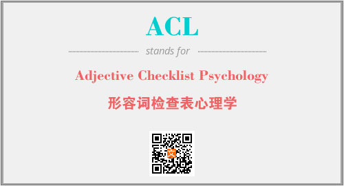 英文缩略词“ACL”经常作为“Adjective Checklist Psychology”的英文缩写来使用,中文表示:“形容词检查表心理学”。本文将详细介绍英文缩写词ACL所代表英文单词,其对应的中文拼音、详细解释以及在英语中的流行度。此外,还有关于缩略词ACL的分类、应用领域及相关应用示例等。