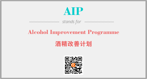 英文缩略词“AIP”经常作为“Alcohol Improvement Programme”的英文缩写来使用,中文表示:“酒精改善计划”。本文将详细介绍英文缩写词AIP所代表英文单词,其对应的中文拼音、详细解释以及在英语中的流行度。此外,还有关于缩略词AIP的分类、应用领域及相关应用示例等。