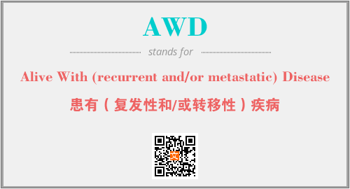 以上为Alive With (recurrent and/or metastatic) Disease英文缩略词AWD的中文解释,以及该英文缩写在英语的流行度、分类和应用领域方面的信息。