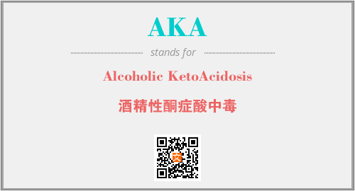 英文缩略词“AKA”经常作为“Alcoholic KetoAcidosis”的英文缩写来使用,中文表示:“酒精性酮症酸中毒”。本文将详细介绍英文缩写词AKA所代表英文单词,其对应的中文拼音、详细解释以及在英语中的流行度。此外,还有关于缩略词AKA的分类、应用领域及相关应用示例等。