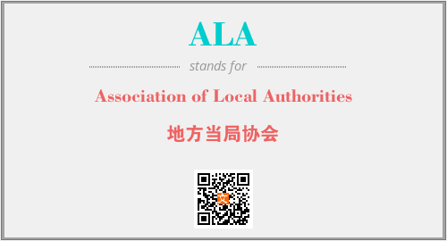 英文缩略词“ALA”经常作为“Association of Local Authorities”的英文缩写来使用,中文表示:“地方当局协会”。本文将详细介绍英文缩写词ALA所代表英文单词,其对应的中文拼音、详细解释以及在英语中的流行度。此外,还有关于缩略词ALA的分类、应用领域及相关应用示例等。