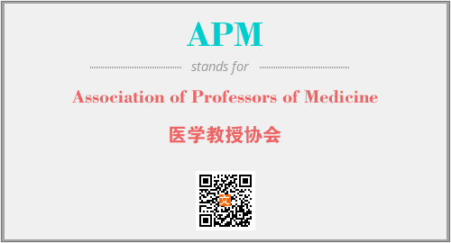 上述内容是“Association of Professors of Medicine”作为“APM”的缩写,解释为“医学教授协会”时的信息,以及英文缩略词APM所代表的英文单词,其对应的中文拼音、详细解释以及在英文中的流行度和相关分类、应用领域及应用示例等。